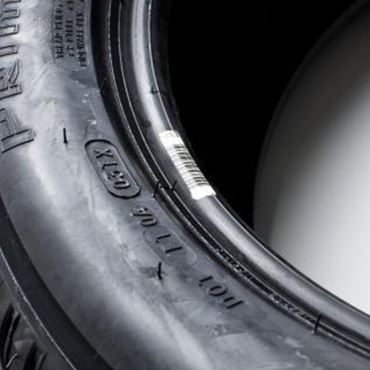 樹脂リボンのおかげで、高い印刷品質と可読性を実現しています, 加硫工程後も: ラベルはタイヤの寿命中も強く結びつき続けます.
